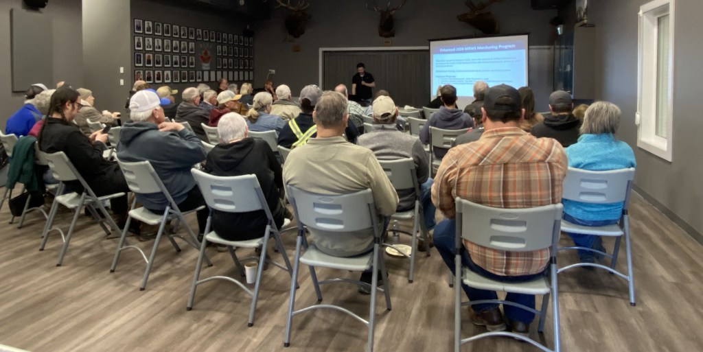 Both community engagement sessions were well attended with approximately 40-50 people in attendance. The community members were extremely well spoken and although the Leslieville meeting did get some heated discussion, all communication was respectful, and concerns raised in a way that was heard by the government representatives in attendance. The presentations by Dana and Darian were informative and supported the concerns raised by the community members. Concerns raised included: the amount of water being diverted from the river by oil industries, the low water level and lack of flow in the Medicine River and its tributaries, the drying up of creeks and other groundwater, the abstraction of water from oil industry water wells, that in at least one case has been approved to drill a 200 foot well that is licensed to pull 78 gallons of water/minute, 24 hours/day for an entire year; the drying up of water wells supporting individual farms and homes, the lack of monitoring of the impact of water diversion on individual water wells and the aquifer, the rising temperatures of the river, the invasion of Prussian carp which thrive on high temperatures and low oxygen and so threaten to wipe out other aquatic life, outdated and ineffective methodologies for measuring water flow and river depth- upon which the approved rate of water diversion by industry has been established. The messages of concern were heard and acknowledged by the Ministry of Environment representatives in attendance.