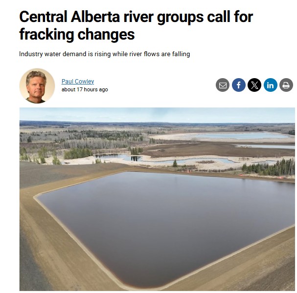 On June 20, 2025, Dana Kreil was interviewed by Paul Cowley from the Red Deer Advocate regarding concerns about the combined effects of the drought and water extraction for fracking purposes on fresh water availability in Central Alberta. Read article.