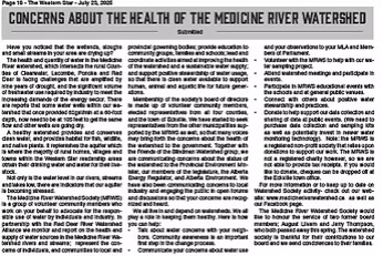 Western Star posts concerns raised by the MRWS regarding the health of the Medicine River.