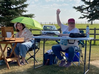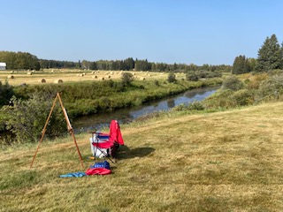 The MRWS Plein Air Painting event on Sunday Sept 14th 2025 was a huge success! Thank you to the 18 painters who shared their day with us and helped to capture the beauty of the river and the surrounding farm lands. This year we had 8 youth also join us for an art work adventure. Their work was spontaneous and creative and an inspiration to us all. Each participating youth received a special MRWS rain gauge as a reward for their work! A special thank you goes out to Sharon Johnston, (our feature artist) who shared some of her fabulous works of art with us all. 46 people joined us for a complimentary supper and participated in the selection of a peoples’ choice award. Debbie Leitch’s rendition of the Medicine River at a location on Ward Nelson’s property was the crowd favorite, but each and every painting provided a unique view and perspective of our beloved watershed and we are grateful to all for sharing their vision and talents with all of us.